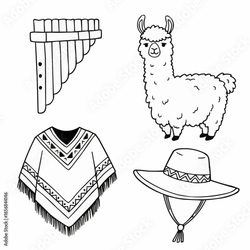 Peruvian icons collection: silhouette symbols of culture and heritage