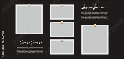 Photo Frame Collection. Polaroid photo frame set.Photo frames with realistic drop shadow vector effect isolated design.Photo frames fixed with adhesive tape on a transparent. Vector design background