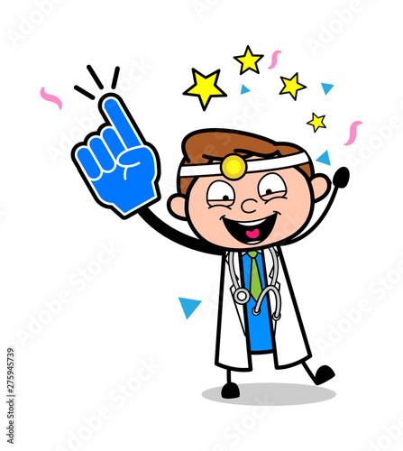Excited and Cheering - Professional Cartoon Doctor Vector Illustration