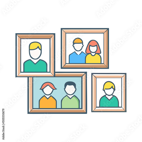 Art and office icons set featuring photo frames, easels, and portraits in flat style