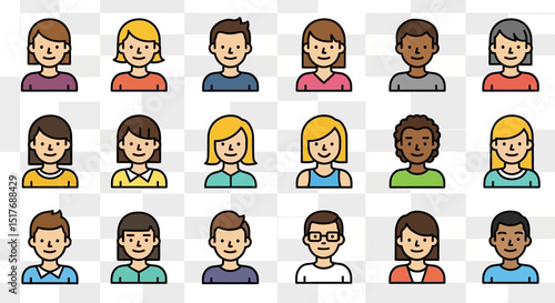 Diverse Collection of Flat Cartoon Profile Icons  Perfect for Websites and Applications