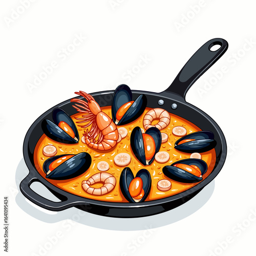 A Colorful and Flavorful Medley of Shrimp, Mussels, and Citrus in a Vibrant Pan Ready for Serving