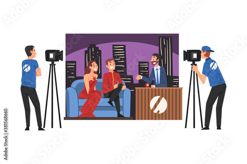 TV Show Interview with Famous Persons, Television Industry Concept Cartoon Style Vector Illustration