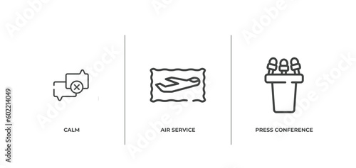 interview outline icons set. thin line icons sheet included calm, air service, press conference vector.