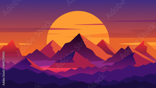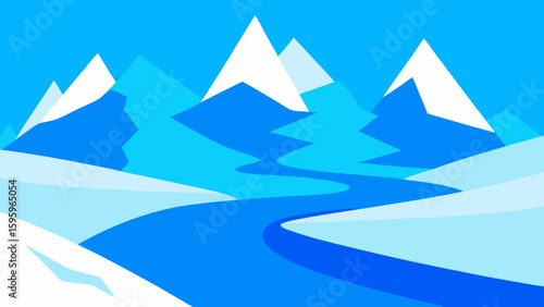 Scenic mountain landscape with snowy peaks and pristine ski tracks in flat style