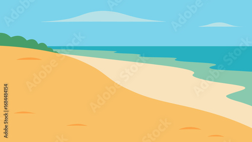 Scenic train journey along coastal cliffside with pristine beach and ocean