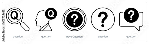 Question line icon set. Information vector icon set. Collection for mobile and web apps. Related to info, query, exam, ask, answer, problem and more. Editable vector stroke.