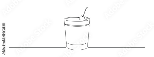 Glass of cocktail in continuous one line drawing. Alcohol shot and beverage bar in simple linear style. Drink menu in editable stroke. Doodle outline vector illustration