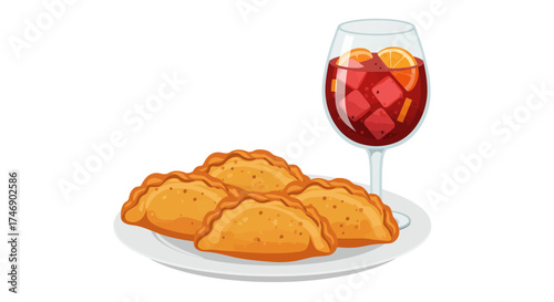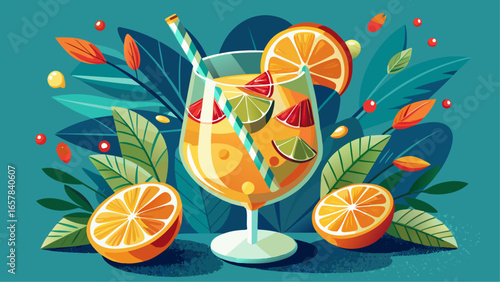 Flat illustration of a refreshing sangria cocktail with citrus slices and straw