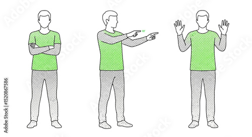 A series of illustrations depicting a man in various poses and actions, showcasing different emotions and activities in a dynamic illustration.