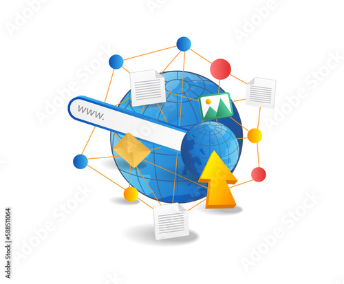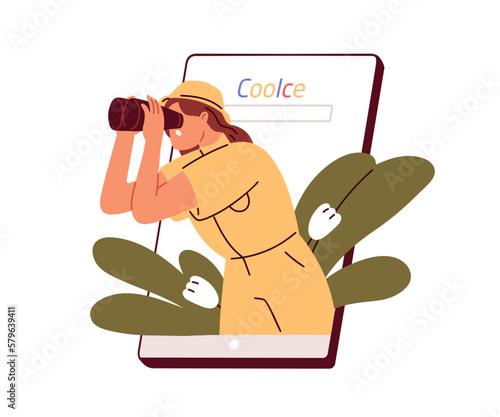 Website link analysis tool. SEO link building strategy. Analysis of website backlinks for SEO. Vector illustration background.