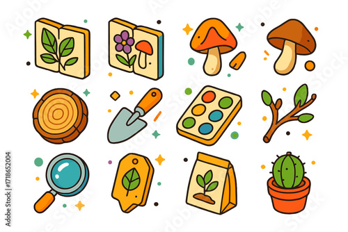 open sketchbook with nature finds arranged thoughtfully no outline flat vector illustration style isolated on white background gentle tones