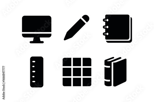 Ruler icons art vector supply marker icon stick sketchbook eraser sharpener charcoal