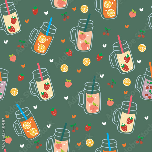 Cute cartoon fruit smoothies and drinks with kawaii faces.