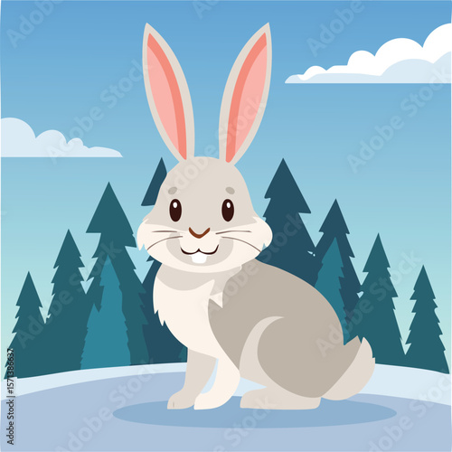 Winter snowshoe adventure in isometric forest scene with snowcovered trees