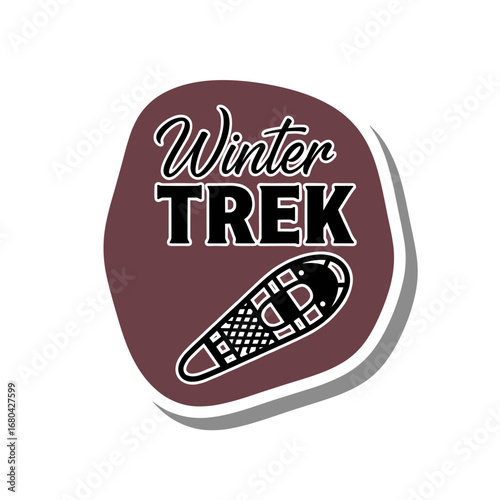 Classic snowshoe and giant pine cone surrounded by abstract geometric shapes representing winter nature