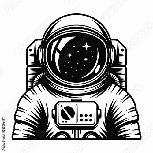Minimalist black and white lineart illustration of an astronaut in a spacesuit