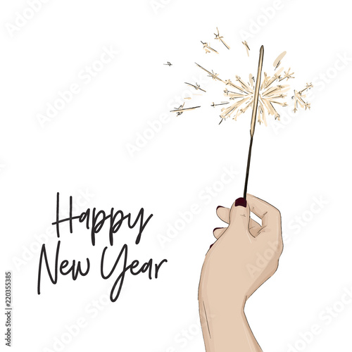 Sparkler in hand.Happy new year 2023 vector illustration.