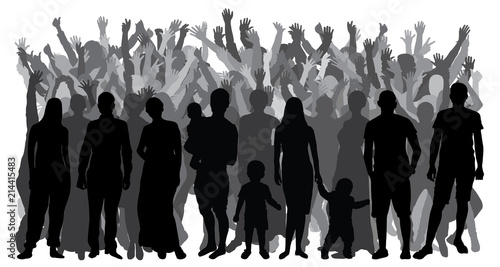 Crowd of spectators at a concert on a white background