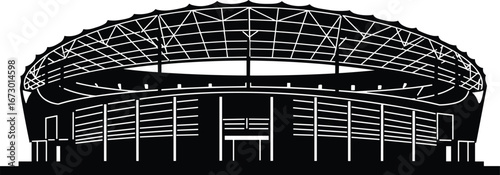 Modern stadium arena geometric architecture and spectator seating vector illustration icon silhouette.