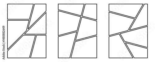 Set of collage grid manga comic storyboard layout panel blank template. Empty page frame for comic book, photo collage, poster, flyer. Vector illustration. Manga storyboard layout template for rapidly