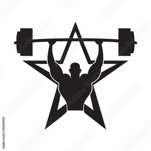 A weightlifting silhouette showcases powerlifting and strongman feats, emphasizing fitness training, gym workouts, muscle building, and intense barbell exercises. Highlighting athletic performance, bo