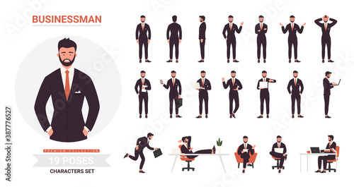 Businessman character set. Character in suit doing
