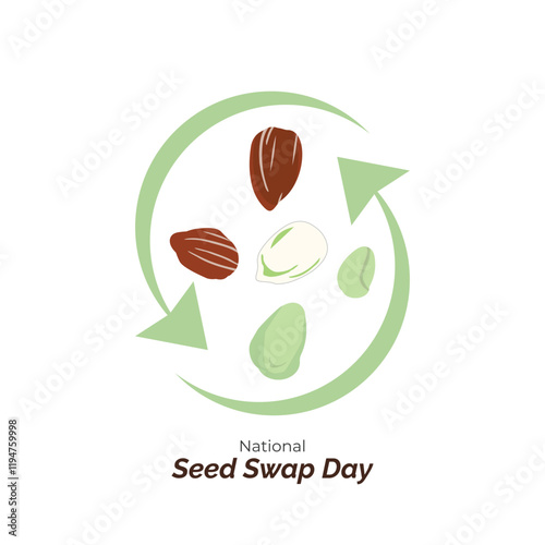 Lets swap emblem of exchange plant party. People with flower sampling and lettering isolated on white background. Ecology event of potted flowers market. Vector illustration.