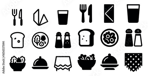 Silhouette kitchen utensils set featuring essential cooking tools and tableware