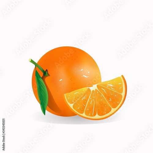 Orange vector fruit. Fresh orange icon. Fruit citrus with slices. Isolated on white.