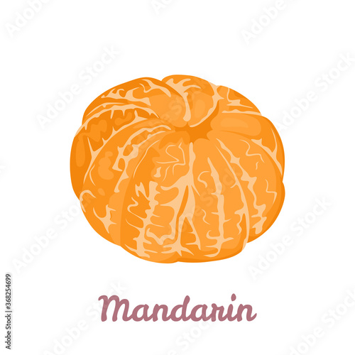 Peeled whole tangerine isolated on white background. Vector illustration of citrus fruit in cartoon flat style. Mandarin icon.