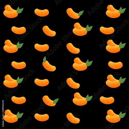 Seamless pattern with tangerines, a mandarin half and a slice of mandarin