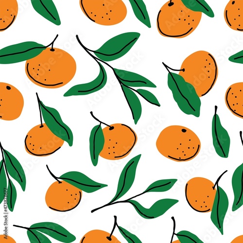 Seamless pattern with tangerines. Stamp textured. Great for fabric, textile, wrapping paper. Vector Illustration