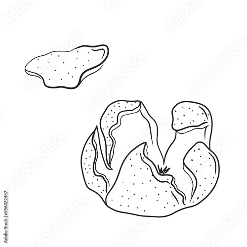 Whole tangerine peel piece without the fruit in black line isolated on white background. Hand drawn vector sketch illustration in vintage, doodle simple outline engraved style. Fresh, winter, vitamin.