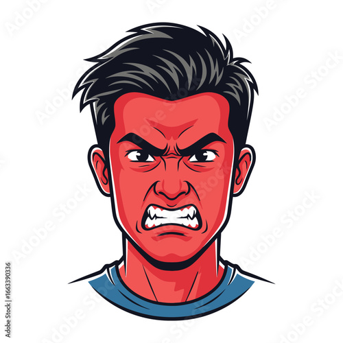 Angry Illustration: A vector illustration portrays a person's face contorted in anger, the bold colors and stylized details emphasize the intense emotions of fury and rage.