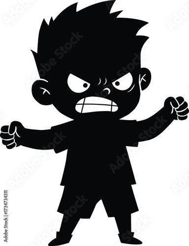 An illustration of a young boy shouting in anger, with his fists clenched and a furious expression on his face in a tantrum.