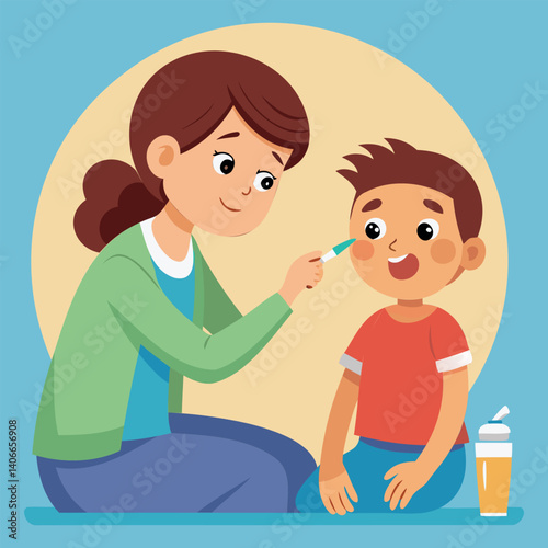 Doctor checking a child’s temperature with a digital thermometer during a routine checkup. Ideal for pediatric health education, clinic visuals, and medical care illustrations