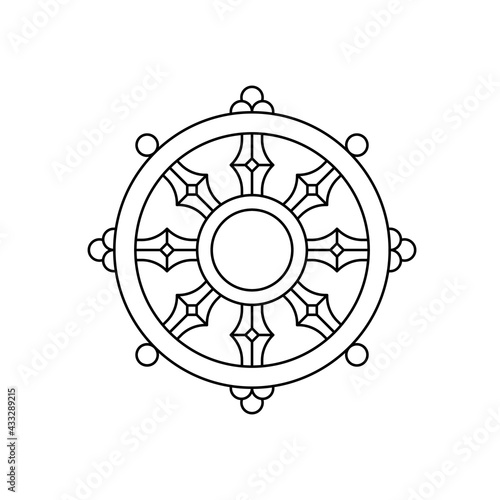Dharma wheel buddhist outline icon. Clipart image isolated on white background
