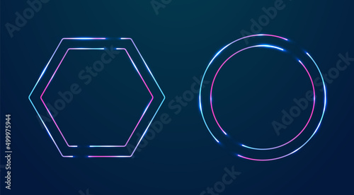 Hexagon and circle neon frames set. Vector empty borders tor text.