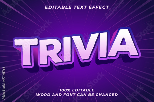 Vector Editable 3D yellow purple text effect. Quiz trivia graphic style on purple background