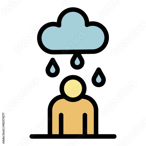 Man under rain icon. Outline man under rain vector icon color flat isolated