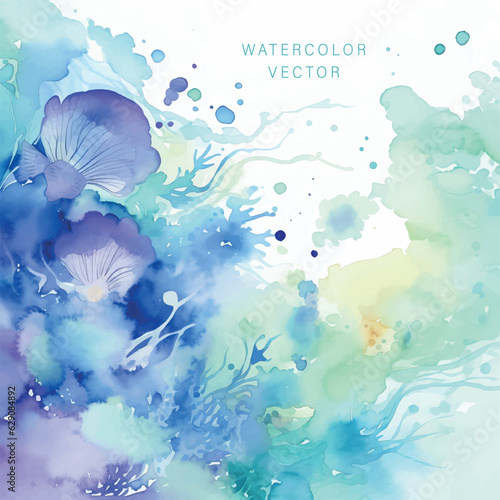 Watercolor set of sea coral reefs and water bodies. Underwater sea and ocean plants. Seabed and plants concept. Vector illustration.