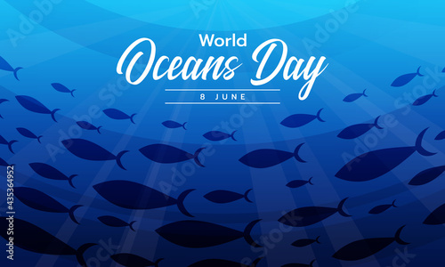 Poster illustration campaign of world ocean day with scene of under the sea and ocean, cloudscape and vector design.