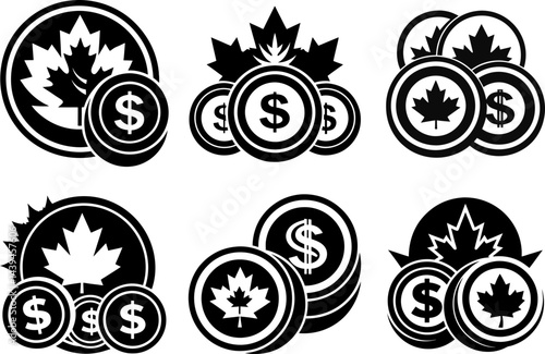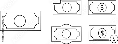Dollar sign currency vector icon set for financial apps | USD money symbol glyphs in multiple black and white styles | Isolated cash payment icon collection for UI/UX design