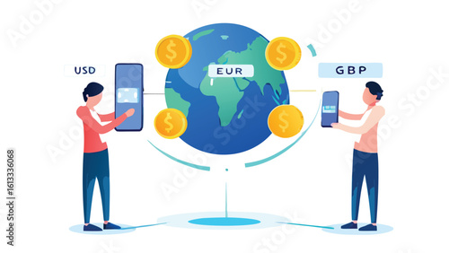 Illustration of global currency exchange with usd eur and gbp using mobile banking applications online