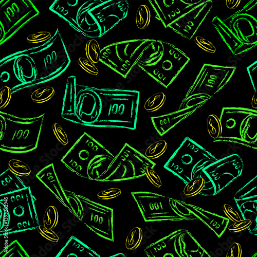 Seamless Pattern of Global Currency (USD & IDR) and Financial Education