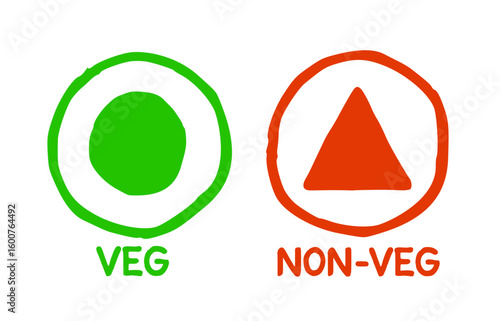 Veg, non-veg - Vegetarian and non-vegetarian marks in India, Sri Lanka, Pakistan. Green sign for packaged food and toothpaste products. Food icon symbol