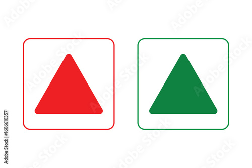 Vegetarian and non-vegetarian symbols. Green dot and red triangle in squares isolated on white background. Vegan and non vegan food labels. Vector flat illustration.