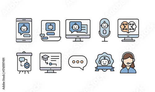 Ai Chatbot Assistance   Icon Set White Style Collection