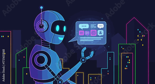 Cute robot waving hello ai assistant chatbot futuristic technology automation artificial intelligence design